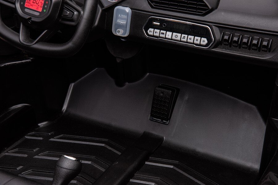 Wahlweise kann das Kind kann selbst mit Lenkrad bzw. Gaspedal und die Erwachsenen können mit der 2,4Ghz 4 Wege – Fernsteuerung das Fahrzeug bedienen. Es ist ein MP3 Anschluss eingebaut und Sound kann reguliert werden. Dank 2 x 24V Elektro Motoren hat er genug Kraft um die Kinder mit bis zu 60 kg tragen zu können. Es sind Scheinwerfer eingebaut.