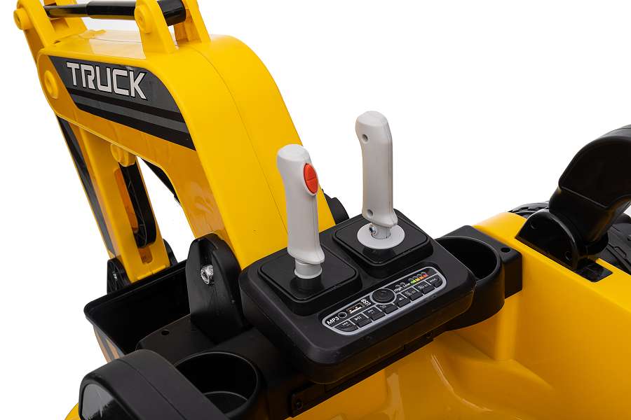 Besonderes Highlight: Das elektronische Heben und Senken der Schaufel wird über zwei Hebel gesteuert – ein echtes Baggererlebnis für kleine Bauarbeiter!