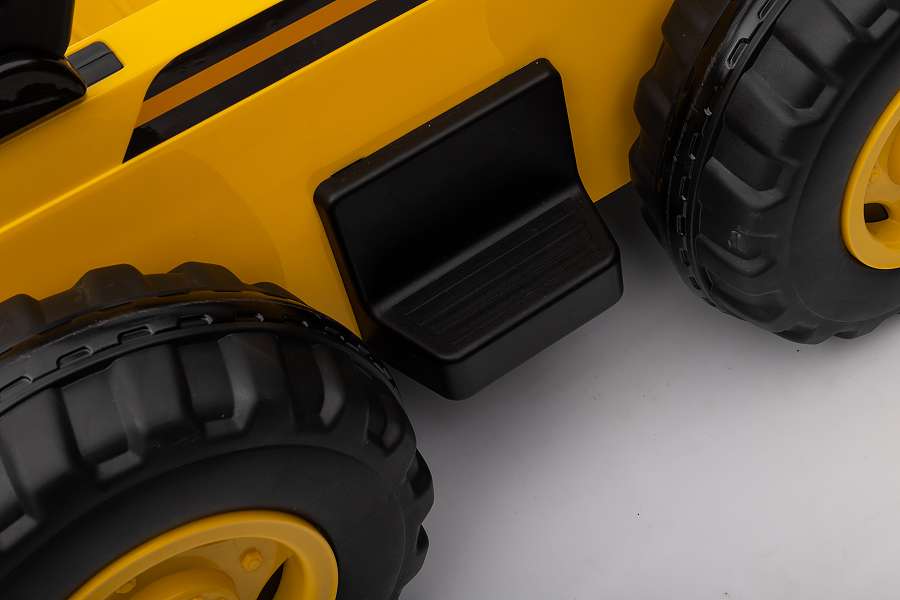 Ein integrierter MP3-Player mit USB- und Speicherkartenanschluss sorgt für Unterhaltung, wobei die Lautstärke individuell reguliert werden kann. Ausgestattet mit zwei leistungsstarken 75-Watt-Elektromotoren, hat der Traktor genug Kraft, um Kinder mit einem Gewicht von bis zu 30 kg sicher zu transportieren. Eingebaute LED-Scheinwerfer erhöhen die Sichtbarkeit und machen das Fahrzeug noch realistischer.