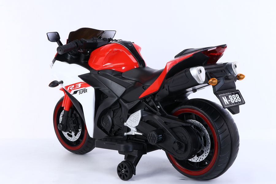 Ihr Kind kann selbst mit Lenker und Gaspedal das Motorrad kontrollieren. Dank einen Elektro-Motor und 12V4,5Ah Batterie hat er genug Kraft um die Kinder mit bis zu 25 kg tragen zu können. Vorne sind LED-Scheinwerfer eingebaut.