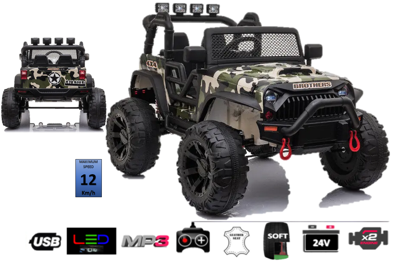 Kinderfahrzeug – Elektro Auto Offroad mit 24V Akku und 2x200W Motoren “Camouflage” 2,4Ghz+Ledersitz+EVA