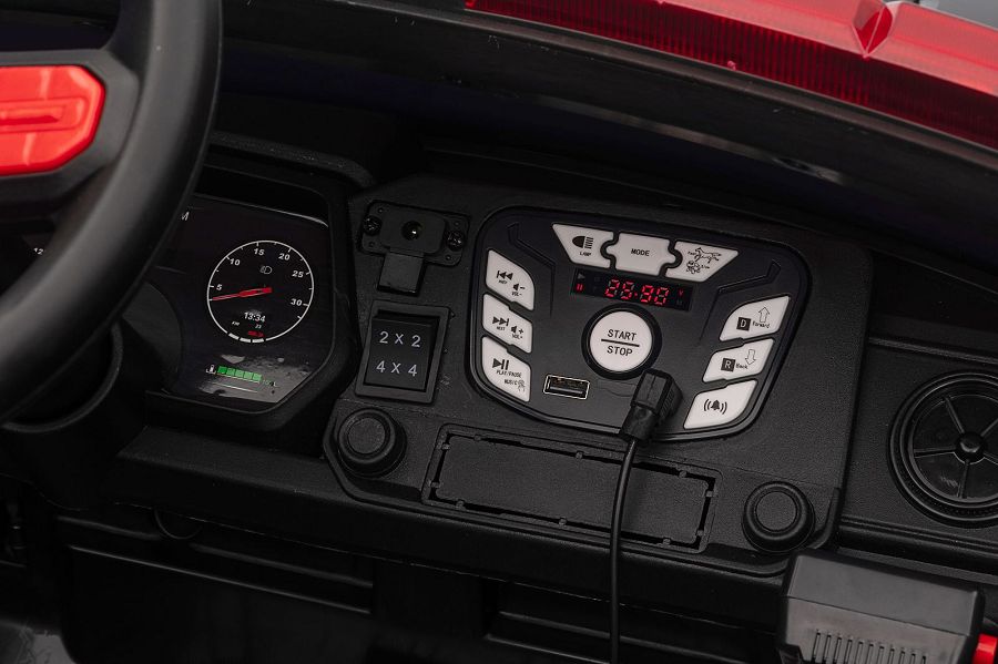 Das Fahrzeug verfügt über moderne Multimedia-Funktionen, darunter USB-Anschlüsse, ein MP3-Player, ein Mikrofon und Musikoptionen, damit Kinder ihre Lieblingslieder während der Fahrt genießen können. Die integrierte Batteriestandsanzeige und die Startfunktion per Knopfdruck sorgen für zusätzlichen Komfort und ein realistisches Fahrerlebnis.